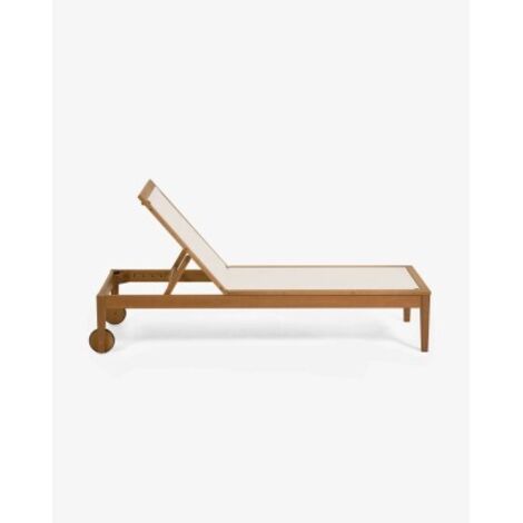 Le bain de soeil en teck lombok vous propose un position totalement allongée, une tablette latérale pour votre cocktail et des roulettes.